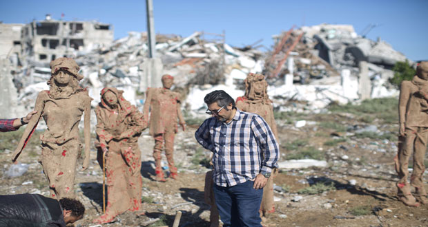 2014-10-21تماثيل للنحات الفلسطيني إياد صباح تمثل ضحايا العدوان الإسرائيلي الأخير على غزة.وصنعت التماثيل من الألياف الزجاجية وغطت بالطين. 2014-10-21mohamad