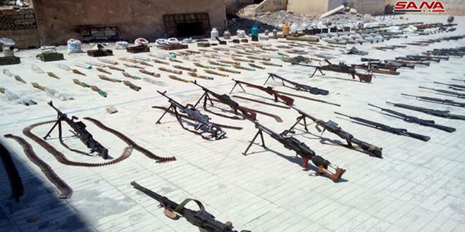 عثرت الجهات المختصة على أسلحة وذخائر متنوعة من مخلفات الإرهابيين في منطقة الحولة بريف حمص الشمالي.