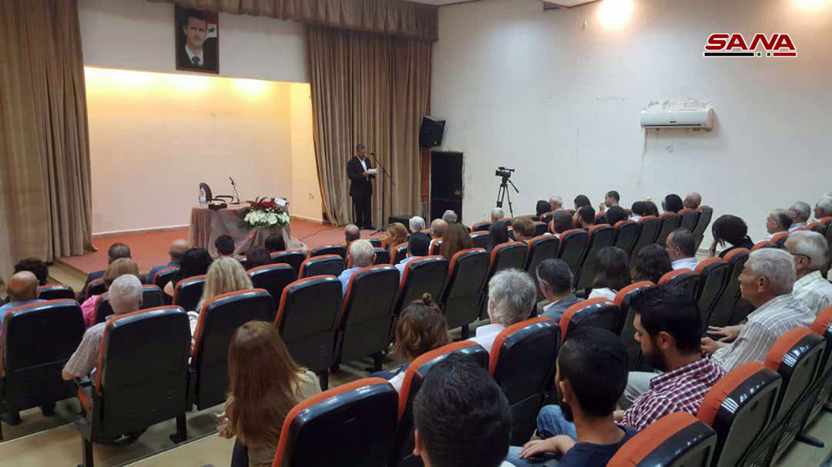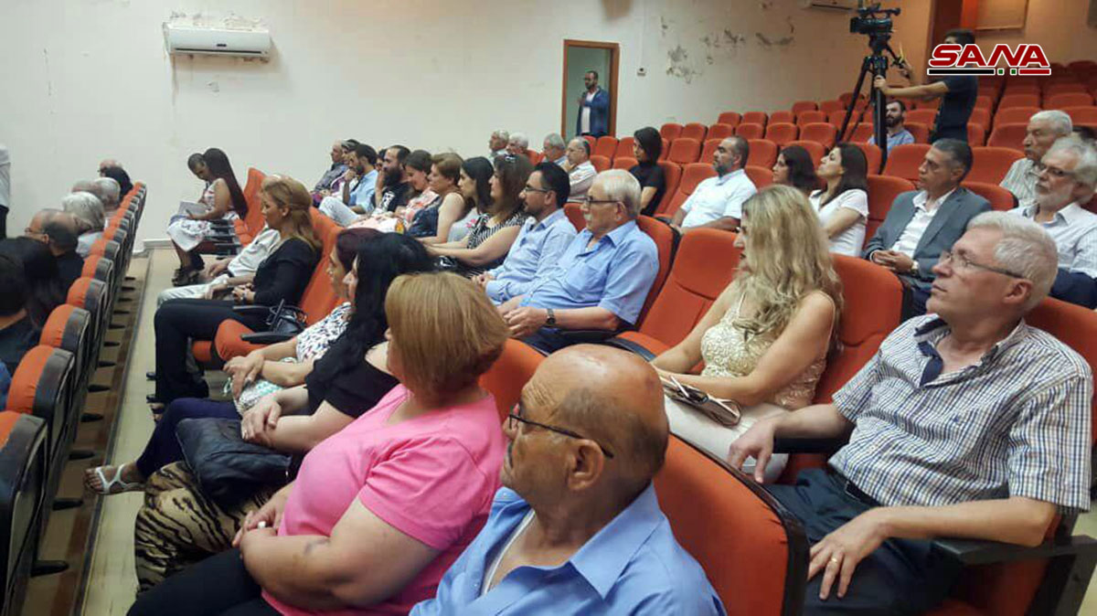 حضر الفن التشكيلي والشعر في فعاليات اليوم الأول من المهرجان الثقافي لجمعية الخدمات الاجتماعية ببلدة مرمريتا بوادي النضارى بحمص.