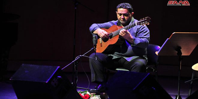 بموسيقا اتسمت بالعشق والنغم الشرقي الأصيل أحيا عازف الغيتار طارق صالحية أمسيته “غيتار شرقي” على خشبة مسرح الدراما بدار الأسد للثقافة والفنون.