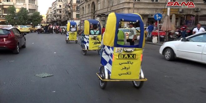 “باكسي” أو “التكسي البيئية” دراجة تعمل كوسيلة نقل جديدة تتجول في شوارع العاصمة دمشق بين وسائل النقل المعتادة “السرفيس والتاكسي” وتوفر الوقت والمصروف حسب ركابها.