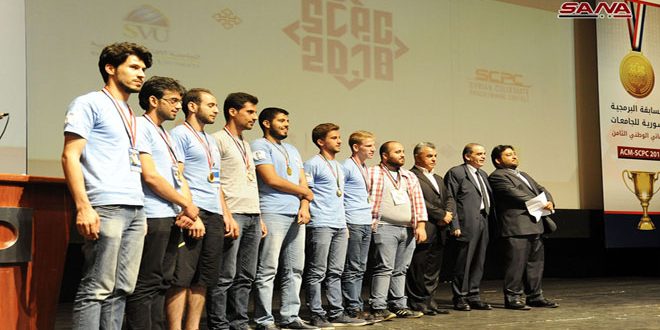 كرمت الجامعة الافتراضية السورية بالتعاون مع إدارة المسابقة البرمجية السورية الفرق الفائزة بالمراكز الثمانية الأولى في النهائي الوطني الثامن للمسابقة البرمجية السورية للجامعات وذلك خلال حفل في دار الأسد للثقافة والفنون “الأوبرا” بدمشق.