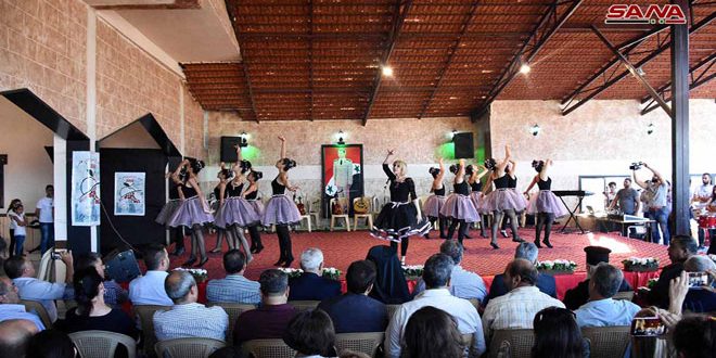 وعقب كلمات الافتتاح قدم الفنان الشاب علاء ابراهيم فقرة غنائية على آلة العود بصوت حماسي صدح فيها بالأغاني الوطنية التي تؤكد تمسك السوريين بوطنهم الأم.