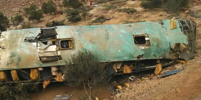 وكان تسعة أشخاص على الأقل لقوا مصرعهم وأصيب 40 آخرون إثر سقوط حافلة ركاب في واد في شمال شرق البلاد أمس الأول.