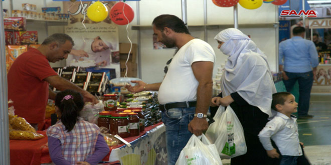 يشكل مهرجان التسوق الشهري العائلي صنع في سورية المقام في صالة الباسل بمدينة المزرعة الرياضية في السويداء فرصة أمام المواطنين لشراء احتياجاتهم المتعددة من مختلف المنتجات ولا سيما في الفترة الحالية التي تسبق عيد الأضحى المبارك والعام الدراسي الجديد.