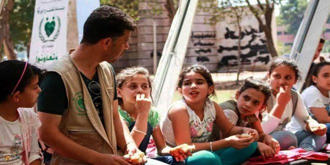 وذكر رئيس مجلس إدارة الجمعية الخيرية زياد عربو أن المخيم الذي حمل عنوان “مساحة أمان” أقيم بالتعاون مع منظمة الأمم المتحدة للطفولة “اليونيسيف” في حديقة النصب التذكاري بحماة مشيراً إلى أن الهدف منه تدريب الأطفال واليافعين على كيفية تقديم الخدمات الاجتماعية وتعزيز المفاهيم البيئية وتنمية دورهم المجتمعي ونشر قيم التطوع لديهم عبر البرامج البيئية والتوعوية بالإضافة إلى تنمية الحس الوطني عبر تحفيزهم على العمل والإبداع.
