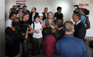 وفد إعلامي من 47 صحفيا يمثلون مختلف وسائل الإعلام العالمية زار اليوم معبر جديدة يابوس الحدودي مع لبنان واطلع على واقع العمل في مركز الإقامة المؤقتة لاستقبال المهجرين العائدين إلى وطنهم وعلى الخدمات الطبية والغذائية التي تقدم لهم على المعبر.