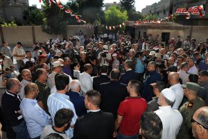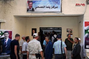 الوفد الذي يزور سورية للاطلاع على واقع المناطق المحررة والخدمات التي تقدمها الدولة لتأمين عودة المهجرين جال في بلدة يلدا في الغوطة الشرقية واطلع على أعمال الترميم والتجهيز التي تقوم بها الحكومة للمدارس والمستوصفات في مدرسة القزاز الأولى للبنات في المدينة والمركز الصحي والخدمات التي يقدمها للمواطنين.