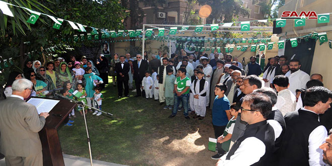 وفي كلمة له خلال الحفل أكد السفير الباكستاني راشد كمال أهمية المناسبة في تاريخ ومستقبل باكستان مضيفا: “إن سورية وباكستان يلتقيان في نضالهما ضد الاستعمار ومحاربتهما لأعداء الحرية والاستقلال”.