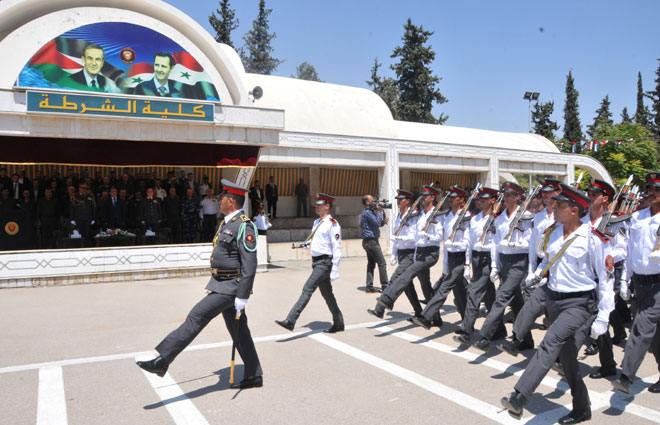 حضر التخريج معاون وزير الداخلية وقائدا شرطة دمشق وريفها وبعض مديري الإدارات في وزارة الداخلية.