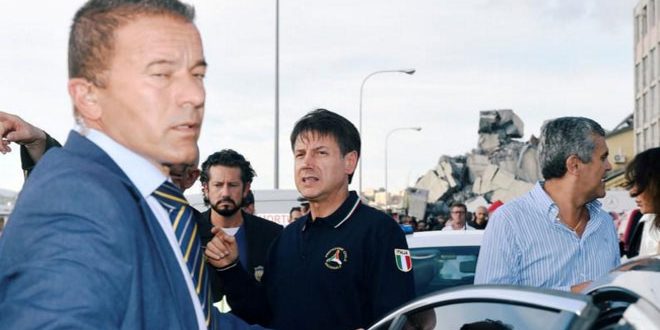 أعلن رئيس الوزراء الإيطالي جوزيبي كونتي حالة الطوارئ لاثني عشر شهرا في مدينة جنوا بعد كارثة انهيار جسر فيها أمس أوقع عشرات الضحايا بين قتيل وجريح.