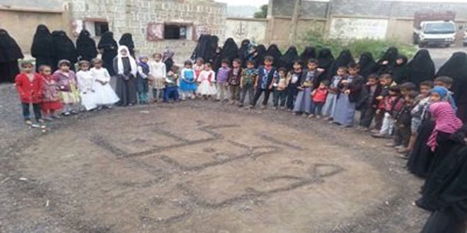 كما استنكرت وقفة احتجاجية أخرى نظمتها نساء وأطفال في محافظة صنعاء تحت شعار كلنا أطفال ضحيان الصمت الدولي المطبق إزاء جرائم العدوان السعودي وآخرها مجزرة ضحيان بصعدة.