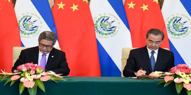 وقع وزيرا خارجية السلفادور والصين في بكين اليوم اتفاقاً لإقامة علاقات دبلوماسية بين البلدين.