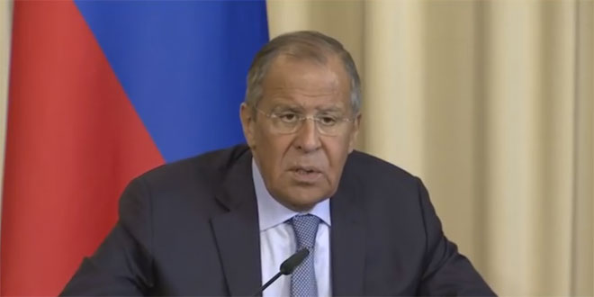 ولفت لافروف إلى أن الوضع معقد في ادلب حيث يحاول تنظيم جبهة النصرة الارهابي السيطرة عليها مجددا تأكيده ضرورة تجنيب المدنيين الخطر لدى تخليص إدلب من الإرهابيين.