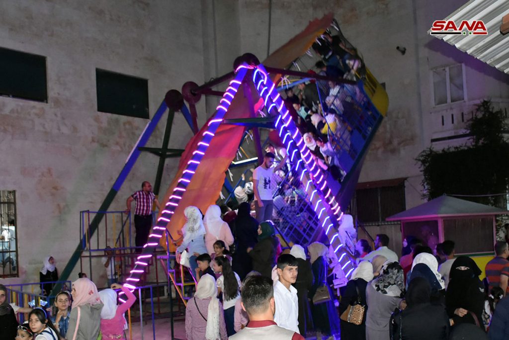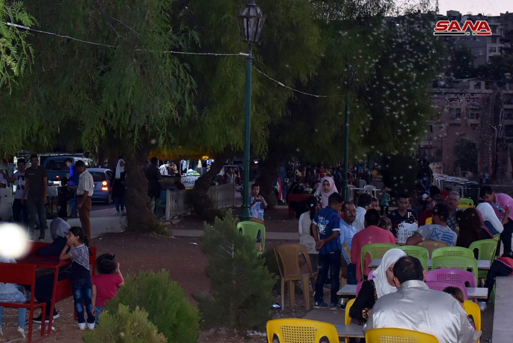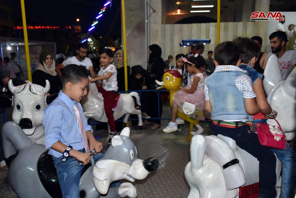2018-08-24حماة-سانانشر العيد ألقه وعطره وجو الألفة والتواصل بين الأهل والأقارب والأصدقاء، وعمت أجواء الفرح والمحبة مختلف أحياء مدينة حماة خلال أيام عيد الأضحى المبارك.تصوير: ابراهيم عجاج اجواء حماة في العيد 2018-08-24manhal