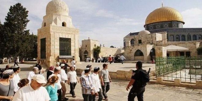 وذكرت وكالة وفا الفلسطينية للانباء أن المستوطنين اقتحموا الأقصى من جهة باب المغاربة عبر مجموعات متتالية ونفذوا جولات استفزازية في باحاته تحت حراسة مشددة من قوات الاحتلال.