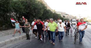 وكان النقيب الجريح علي الذي فقد ساقه في الحرب الإرهابية الظالمة على سورية بدأ مسيره من قريته بشنين في ريف مصياف بمحافظة حماة مرورا بكل المناطق المحررة حتى وصل إلى دمشق خلال تسعة أيام وكانت له محطات في بانوراما حرب تشرين التحريرية وساحة الأمويين وصرح الجندي المجهول.