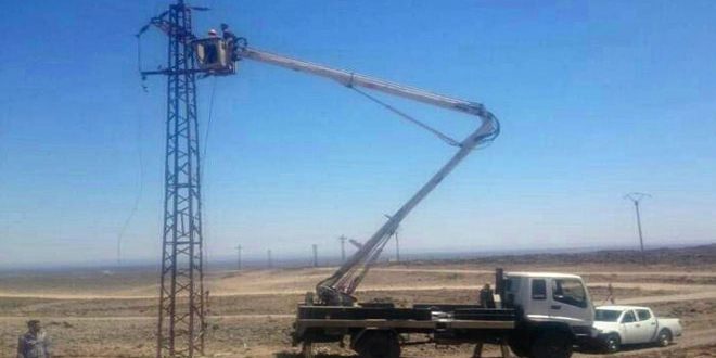 أنهت ورشات الشركة العامة لكهرباء السويداء إصلاح الأعطال والأضرار التي لحقت بخطوط التوتر المتوسط المغذية لآبار الدياثة جراء الاعتداءات الإرهابية التي طالتها في الريف الشرقي للمحافظة.