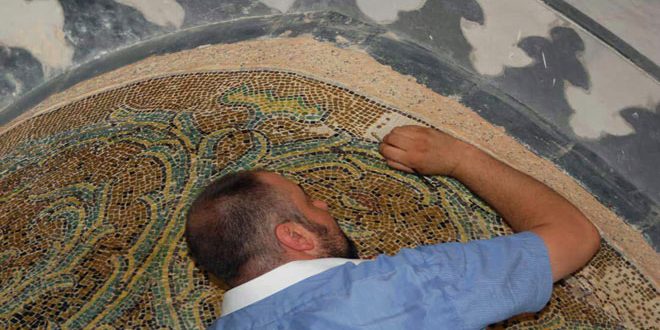 أنهت دائرة الآثار في حمص أعمال الترميم والصيانة للوحة فسيفساء طاسة محراب الجامع النوري الكبير التي استمرت لخمسة أشهر.