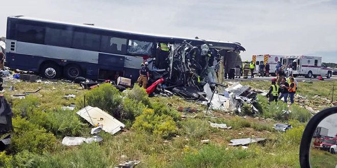لقي أربعة أشخاص مصرعهم جراء اصطدام حافلة ركاب بشاحنة على طريق سريع في ولاية نيو مكسيكو جنوب غرب الولايات المتحدة.