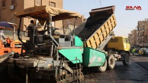 أنهت الورشات الفنية في دير الزور جميع اعمال الحفريات الخدمية ومد قميص اسفلتي في شارع مساكن حوض الفرات وذلك بالتوازي مع اعادة تأهيل الأحياء المأهولة في المدينة وإعمار ما خربه الإرهاب.