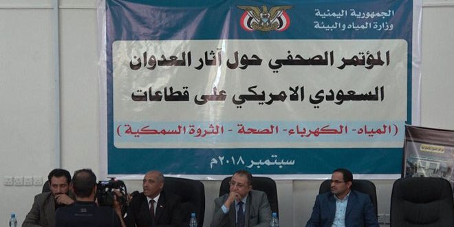 وأشارت وزارات المياه والكهرباء والصحة العامة والثروة السمكية في مؤتمر صحفي مشترك عقدته اليوم بالعاصمة صنعاء ونقلته وكالة الأنباء اليمنية سبأ إلى تكثيف العدوان خلال الأشهر الأخيرة استهدافه لآبار المياه والمنشآت الصحية والخدمية في محافظة الحديدة بالتزامن مع منع الصيادين من مزاولة أعمالهم وعدم التورع عن قتلهم أن حاولوا الاصطياد.
