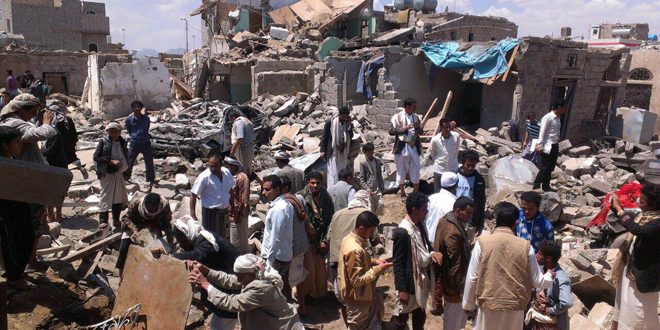 ويواصل النظام السعودي عدوانه على اليمن منذ آذار عام 2015 مخلفاً عشرات آلاف الضحايا المدنيين والمصابين ودماراً هائلاً في البنى التحتية والاقتصادية في البلاد وأزمة صحية وغذائية كارثية نتيجة فرض أنظمة العدوان حصاراً على المدن اليمنية.