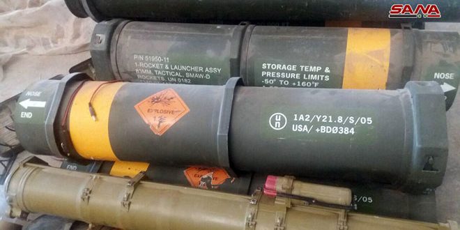 وأفاد مراسل سانا في القنيطرة بأن الجهات المختصة عثرت خلال عمليات تمشيط القرى والبلدات التي تم تحريرها من الإرهاب على صواريخ “تاو” أمريكية وقنابل إسرائيلية الصنع وراجمات صواريخ ومناظر ليلية وذخيرة متنوعة وقواذف “ار بي جي” وهاون عيار 130 و80 مم إضافة إلى كمية من المواد الطبية والأدوية من مخلفات الإرهابيين في قريتي الرفيد والبريقة بالريف الجنوبي.