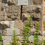 وعن الكتابات الأثرية فيها أوضح آل أمام أنها تكثر في جميع انحائها مؤرخة بناء الأبراج والاسوار وجميع أركانها الأخرى بوضع ساكفة في مكان ظاهر تحمل اسم الباني وذكر سنة البناء منها الحشوة الكتابية المقوسنة بخط الثلث النسخي الأيوبي كما توجد فيها مجموعة من الرنوك الشعارات العسكرية وهي رسوم رمزية كالخنجر والكأس كان يتخذها حكام السلاجقة والأتابكة والأيوبيين والمماليك.