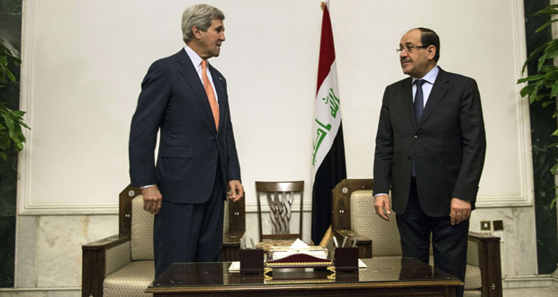 وكان كيري أكد أمس أن ما يسمى تنظيم “دولة العراق والشام” الإرهابي يشكل تهديدا لكل دول المنطقة واوضح أن الشعب العراقي هو من يختار قادته وواشنطن لا تدعم اختيار أحد القادة العراقيين.