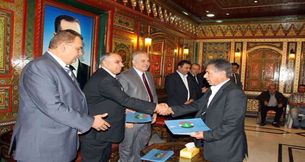 حضر التكريم رئيس مجلس المحافظة المهندس ياسر ديب وعضو قيادة فرع حزب البعث رئيس مكتب الفلاحين هانيبال ابراهيم وفعاليات نقابية.