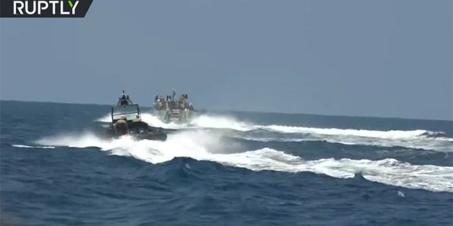 وذكرت قناة روسيا اليوم أن الوحدات نفذت مهام نقل القوات والمعدات وتدربت على مكافحة الأعمال التخريبية في مناطق تواجد السفن الحربية الروسية كما تمت في إحدى المراحل تجربة إعداد منطقة إنزال لقوات الإنزال البحري ومكافحة القرصنة في البحر وتحرير الرهائن.