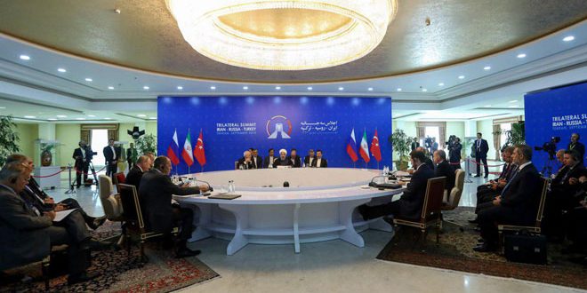 أكد البيان المشترك لقمة الدول الضامنة لمسار استانا الالتزام بوحدة وسيادة الأراضي السورية والاستمرار فى محاربة الإرهاب.