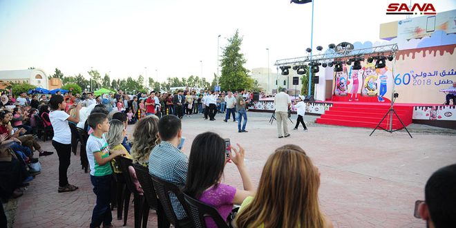 قدم مسرح الطفل في معرض دمشق الدولي بيومه الأول برنامجاً غنائياً أحياه أطفال سوريون موهوبون إضافة إلى عرض مسرحي غنائي بعنوان قرية السنافر.