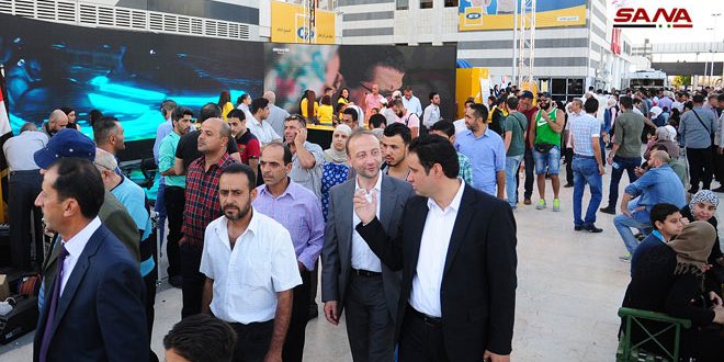 على الزاوية اليسارية لمدخل المدينة أقامت وزارة الإعلام جناحها الخاص لذلك كان من الطبيعي أن يزدحم المدخل بالإعلاميين “وكالة الأنباء والقنوات التلفزيونية والصحف والمواقع الإلكترونية والإذاعات” الكل يفكر بأول مادة سينشرها عن معرض يشغل السوريين على المستويين الرسمي والشعبي وما بينهما من اقتصادي وثقافي وفني.