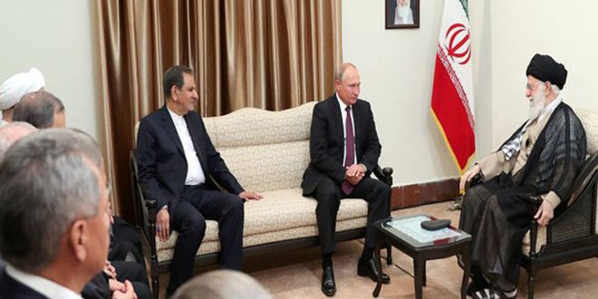 وأعرب الخامنئي عن تأييده لمواقف الرئيس بوتين حول حل قضايا المنطقة بشكل مشترك ومن دون تدخل الأطراف الخارجية محذرا في الوقت نفسه من أن “الأمريكيين يريدون التدخل في كل قضايا المنطقة والعالم ولأجل القيام بهذا العمل يعتمدون على مسؤولي بعض الدول الضعاف”.
