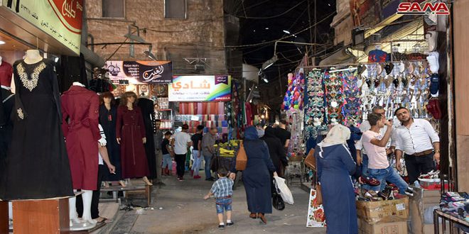 أسواق حماة تشهد ازدحاماً ملحوظاً خلال المساء، استعداداً لاستقبال عيد الفطر المبارك