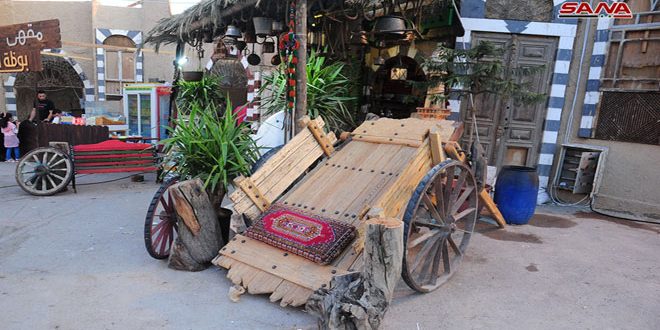 إذا كان من المستحيل العودة للزمن الماضي الجميل فمن الممكن أن تعيشه للحظات في جناح القرية الشامية التي تسترجع التراث بما تقتنيه من تحف وشرقيات وأعمال وحرف يدوية تروي فصولا من ماضي السوريين بلسان الطبيعة لا الكلمات.