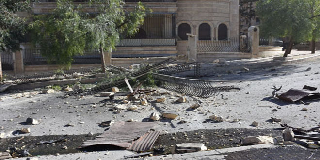 استشهدت طفلة واصيب 10 مدنيين بجروح مختلفة نتيجة اعتداء التنظيمات الارهابية بقذيفتين صاروخيتين على حيي الخالدية وشارع النيل بمدينة حلب.