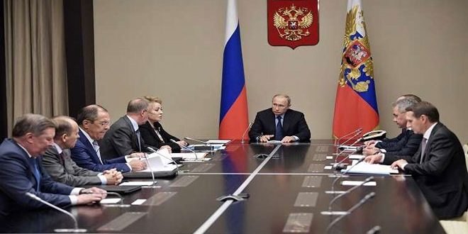 بحث الرئيس الروسي فلاديمير بوتين مع أعضاء مجلس الأمن الروسي اليوم الوضع في إدلب وأعرب عن قلقه إزاء أعمال الإرهابيين الموجودين فيها.