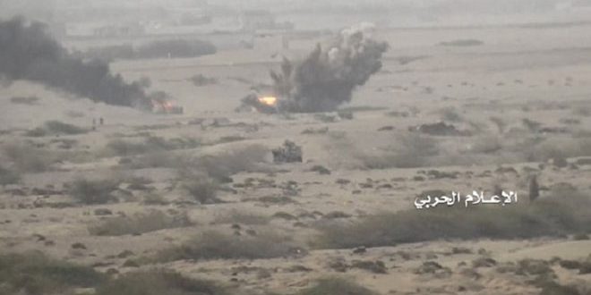 وكانت القوة الصاروخية للجيش اليمنى واللجان الشعبية استهدفت امس بصاروخ باليستى معسكرا لقوات النظام السعودى فى نجران جنوب غرب السعودية كما استهدفت مدفعية الجيش تجمعات لمرتزقة العدوان فى جيزان ونجران وذلك ردا على عدوان تحالف بنى سعود المتواصل على اليمن منذ اذار عام 2015 والذي أوقع عشرات الآف الضحايا المدنيين وألحق دمارا هائلا بالبنى التحتية والاقتصادية اليمنية.