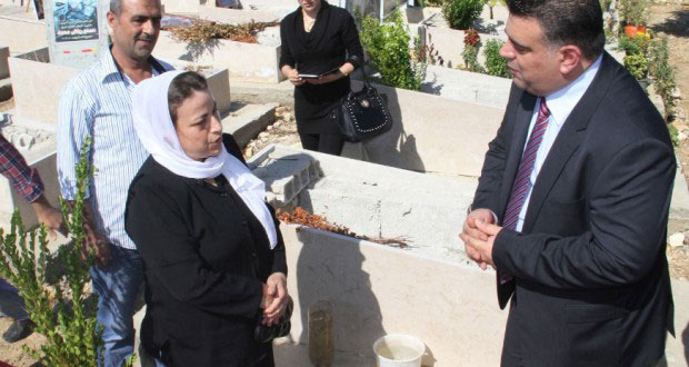 وخلال زيارته وأمين فرع طرطوس لحزب البعث العربي الاشتراكي غسان أسعد مقبرة الشهداء بمدينة طرطوس اليوم رأى المحافظ أن ما تشهده سورية اليوم حرب عدوانية ومحاولة للنيل من صمودها تتطلب من الشعب بذل الغالي والنفيس في سبيل الدفاع عن عزتها وكرامتها.