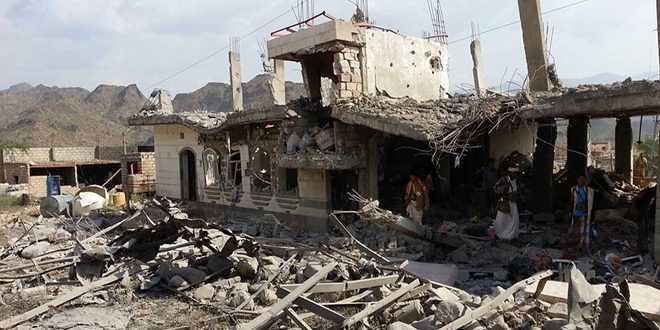 ونقل موقع المسيرة نت اليمني عن مصادر محلية قولها إن طيران العدوان شن غارة على منزل مواطن يمني في منطقة حوران بمديرية ردمان ما أسفر عن مقتل سبعة مواطنين وجرح عدد آخر في حصيلة أولية.