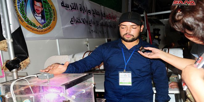 طلاب المعهد الصناعي بالسويداء شاركوا بدورهم عبر مشاريع تتعلق باستخراج الماء من الهواء وهذا الجهاز يستخدم في المناطق الصحراوية وحفظ الحليب من الفساد ويستخدم في المزارع والمعامل الكبيرة إضافة إلى جهاز لصناعة مكعبات الثلج يستخدم في المطاعم والفنادق.