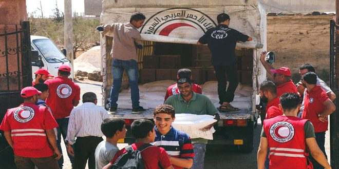 أوصل فرع الهلال الأحمر العربي السوري في درعا قافلة من المساعدات الغذائية إلى 8 بلدات بالريف الجنوبي الشرقي.