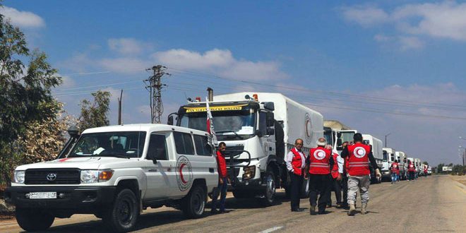 في إطار تأمين احتياجات المواطنين في المناطق التي أعاد إليها الجيش العربي السوري الأمن والاستقرار أوصل فرع الهلال الأحمر العربي السوري بدرعا 17 شاحنة محملة بالمواد الغذائية لبلدتي صيدا والنعيمة بالريف الشرقي.