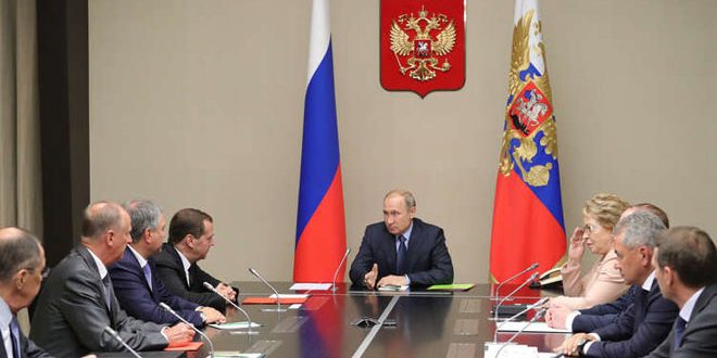 بحث الرئيس الروسي فلاديمير بوتين مع أعضاء مجلس الأمن القومي الروسي المسائل المتعلقة بأمن العسكريين الروس في سورية إثر إسقاط الطائرة الروسية إيل20.