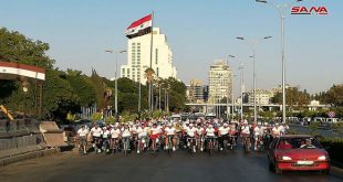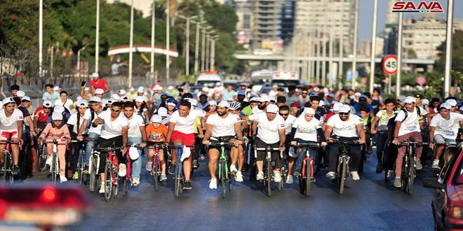 بمشاركة 200 متسابق من مختلف الأعمار أقيم مساء اليوم مسير السلام من أجل سورية للدراجات الهوائية والذي ينظمه الاتحاد الرياضي العام بالتعاون مع شركة سيريتل للاتصالات بمناسبة الاحتفال بيوم السلام العالمي.