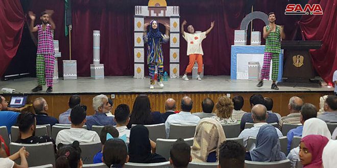 وعرض حكاية ملونة للمسرح القومي في المحافظة من تأليف وإخراج اسماعيل خلف وبطولة الفنان باسل حريب الذي جسد فيه شخصية بقبق الكسلان وهو رجل قليل الحيلة ولكنه يحلم بحياة رغيدة لا تتحقق على الرغم من كل محاولاته المتكررة في كسب الرزق بطرق ملتوية وغير مستقيمة ويعتمد العرض على السرد القصصي المبسط الذي يلائم الأطفال إضافة إلى الطابع الكوميدي وتتخلله الأغاني والموسيقا الهادفة لتعزيز الأفكار الرئيسية لنص المسرحية.