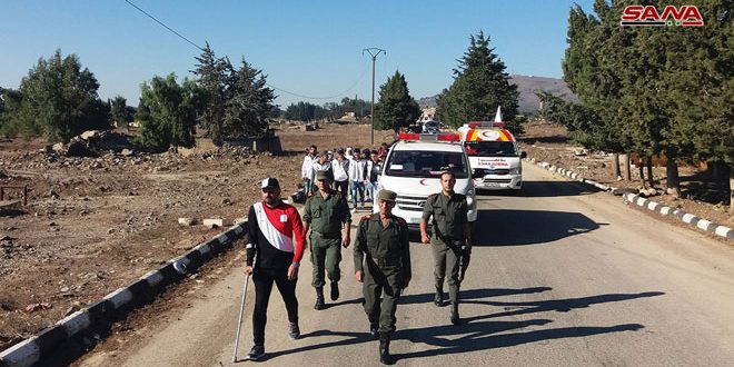 بدأ الجريح الجندي مهران محمد محمود مسيراً على الأقدام من ساحة التحرير في مدينة القنيطرة المحررة إلى ضريح القائد المؤسس في مدينة القرداحة بمحافظة اللاذقية.